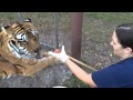 Shere Khan will be 20 this year and is acting lethargic and not eating well. Dr. Wynn drew blood and has sent it out for testing, but meanwhile he needs pain medications so Jamie Veronica, President of Big Cat Rescue, shows her technique for pill-ing a big cat.leopard print How to Pill a Tiger | |